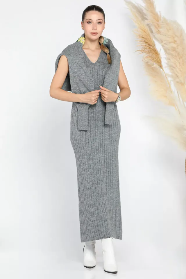 فستان ماكسي ضيق مخرم نسائي بدون أكمام وبياقة دائرية