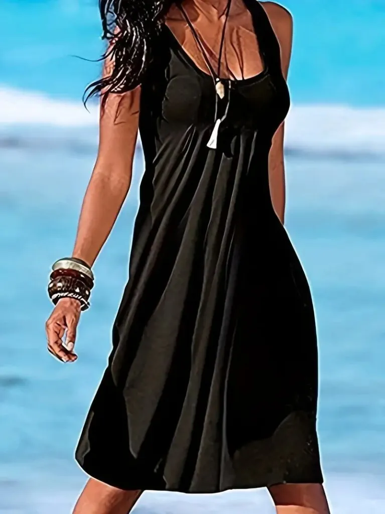 فستان موسلين بياقة V مع أكمام بالون ورباط خصر مزين بخرز لإطلالة صيفية منعشة