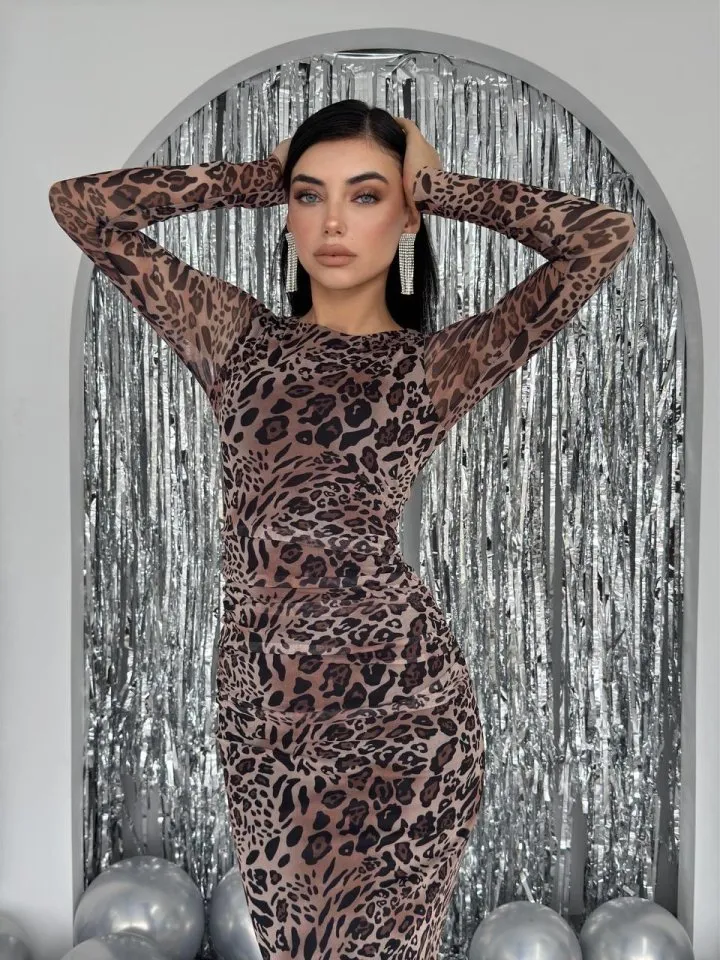 فستان ميدي بكسرات بياقة دائرية بدون أكمام وظهر مكشوف لإطلالة صيفية أنثوية