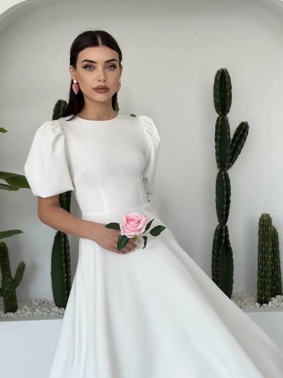 فستان ميدي بكسرات وياقة دائرية بدون أكمام وظهر مكشوف