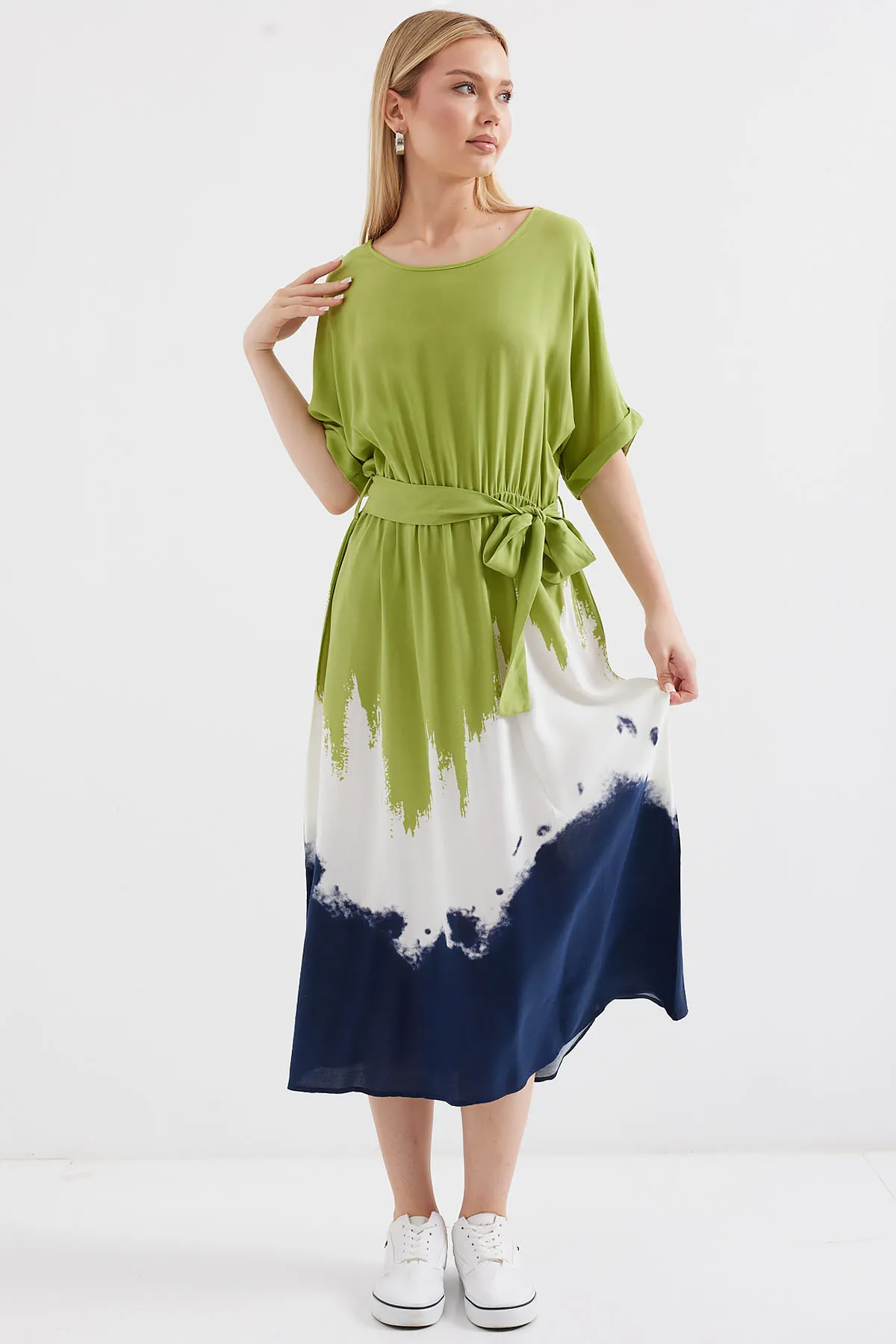 فستان نسائي ميني كلوش مجعد بستايل لف مع أكمام كاب وخصر مطاطي