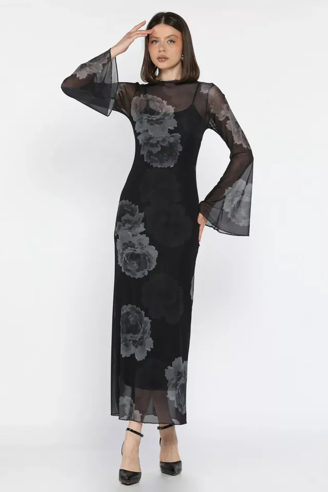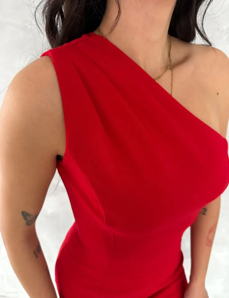 فستان نسائي ميدي بياقة مربعة مع سحاب أمامي