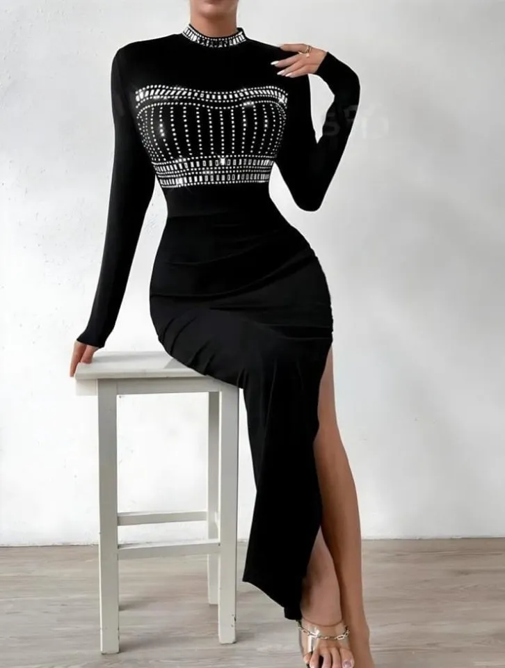 فستان ميني ضيق لامع مع أكمام فراشة وكشكش وشق جانبي، خيار جريء لأمسيات الصيف للنساء