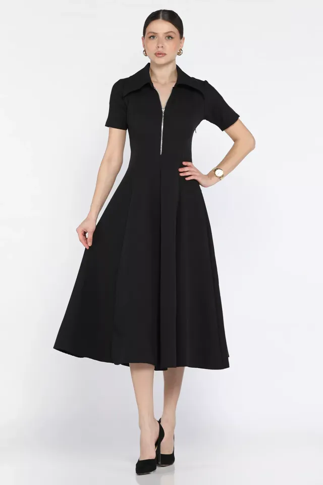 فستان ميدي فيسكوز بقصة A وياقة V مع أكمام قصيرة، خيارك السهل لإطلالات صيفية كاجوال