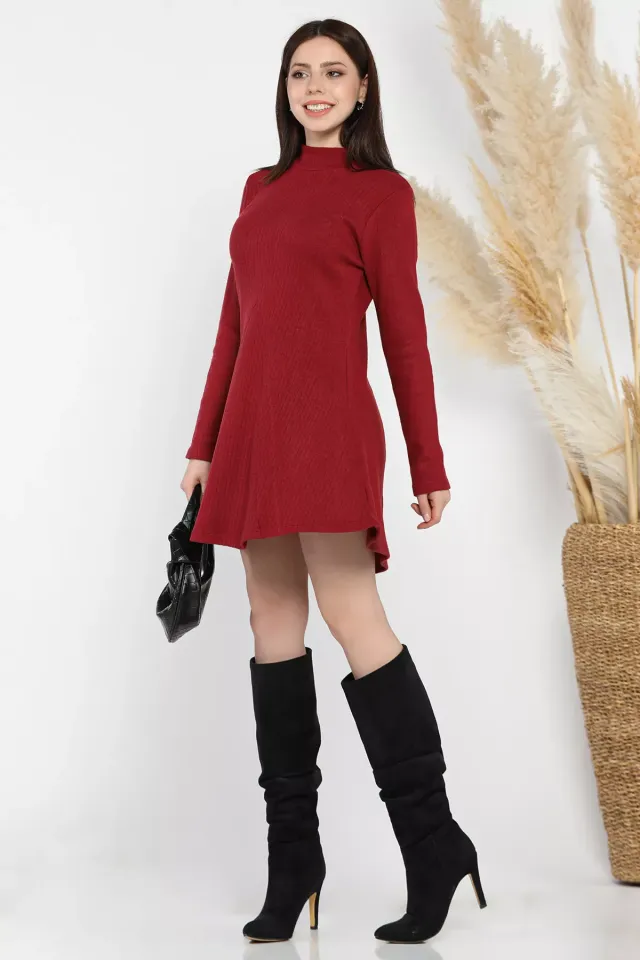 فستان ميدي أطلس مشجر بقصة A وياقة دائرية مع أكمام قصيرة