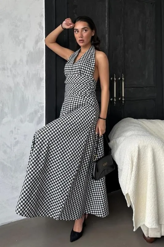 فستان ميدي أطلس مشجر بقصة A وياقة دائرية مع أكمام قصيرة، خيارك المثالي لإطلالات صيفية منعشة