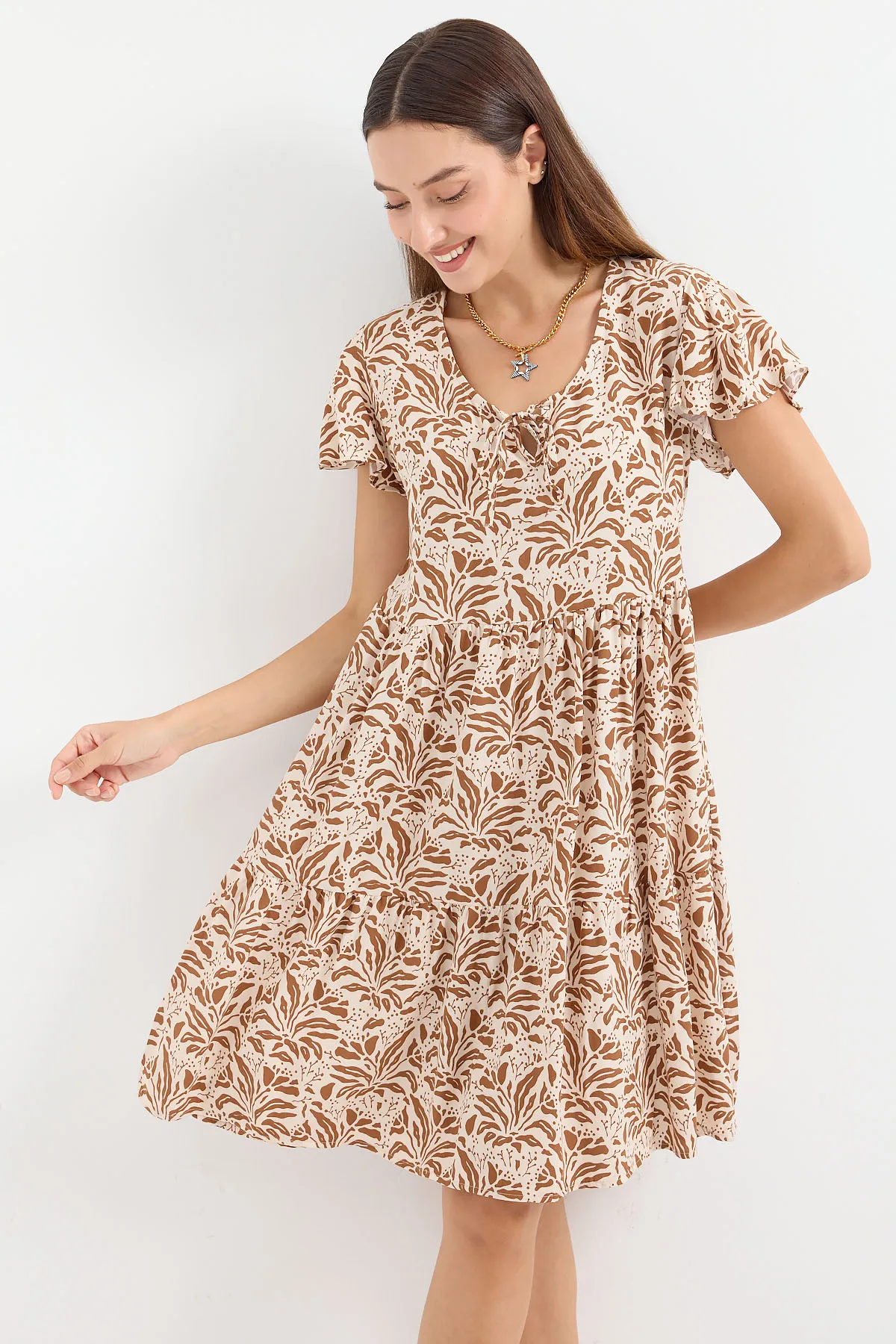 مقاسات الموديل: الارتفاع: 176 سم، الصدر: 90 سم، الخصر: 63 سم، الوركين: 94 سم