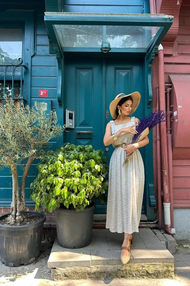 مميزات المنتج: فستان بياقة مربعة وسحاب في الخلف