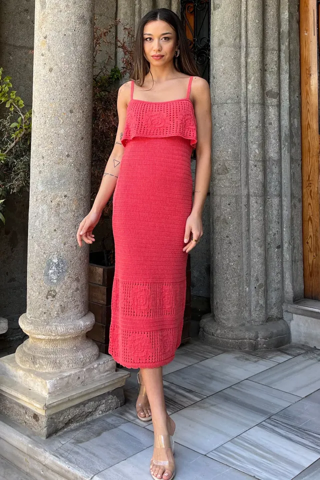 مقاسات الموديل: الطول: 176 سم، الصدر: 90 سم، الخصر: 63 سم، الوركين: 94 سم