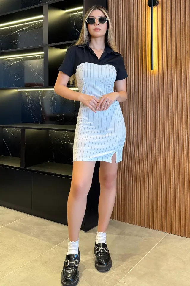 فستان ميدي نسائي منقوش بياقة قميص وأكمام قصيرة
